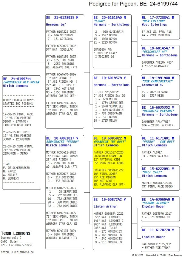 Las palomas hasta el año 2023 inclusive están sexadas por ADN y tienen una fiabilidad del 99%. Consulte antes del envío la posibilidad de añadir un certificado de paternidad por 60€ |